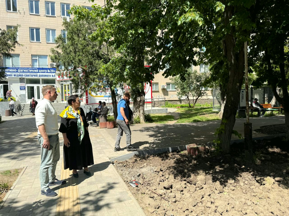 На даний момент йдуть роботи зі створення зелених зон і ремонту асфальтного покриття для паркувальних місць відвідувачів Консультативно-діагностичного центру №20.