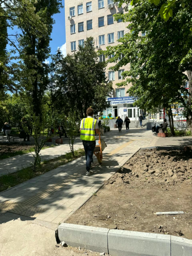 У районі Одеси, на вулиці Левітана, 62, тривають роботи з покращення території, що прилягає до КНП «Консультативно-діагностичний центр №20» Одеської міської ради.