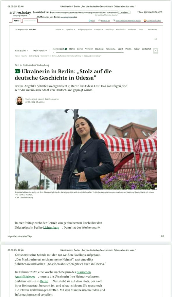 10 вересня на площі Odesaplatz у Ліхтенберзі відбувся фестиваль OdesaFest — культурна подія, що зібрала українську спільноту та жителів Берліна навколо Одеси.